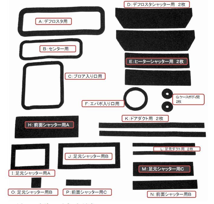 当セットは、ホンダNSX(NA1・NA2)のヒーターユニットを分解整備する際に老化したスポンジと交換することを目的に作られたスポンジセットです。